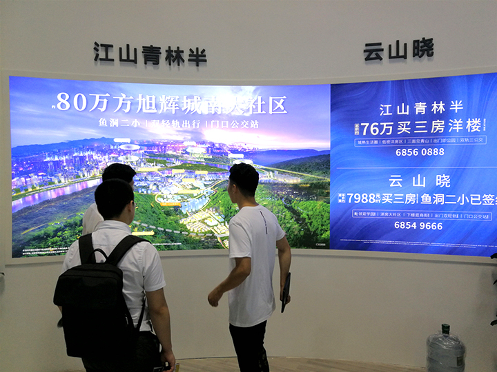 走進(jìn)南坪國(guó)際會(huì)展中心的入口,迎面而來(lái)的就是一樓展廳,這里主要展示的是二手房中介機(jī)構(gòu)、長(zhǎng)租公寓品牌、裝飾建材。如果你對(duì)這種大雜燴式的看房形式不感興趣,那么就跟隨小編的腳步直奔四樓展廳,這里匯聚了各大品牌房企,融創(chuàng)、龍湖、萬(wàn)科、金科、恒大、保利、華潤(rùn)、旭輝、香港置地、碧桂園、華宇等2019年上半年重慶主城區(qū)商品房銷(xiāo)售TOP20品牌開(kāi)發(fā)企業(yè)都悉數(shù)參展。