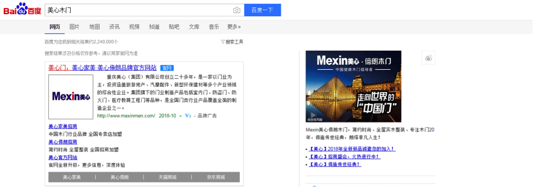 “重慶美心麥森門業(yè)在外地同行知名度較低,推廣競爭激烈,運用百度品牌專區(qū)、信息流推廣以來展現(xiàn)量激增,效果明顯。”