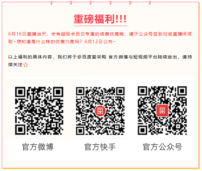 6月16日,百度愛采購超級會員日會有超多福利不間斷放送,6月8日-6月16日,持續(xù)9天驚喜不打烊,四重超值福利,為您呈上超有料的精彩活動!
